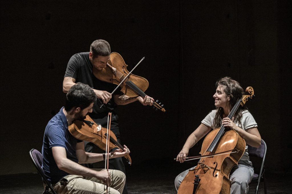 Ce trio à cordes, composé de deux violons barytons et d’un violoncelle, a été fondé autour des pièces pour baryton de Joseph Haydn. Issus d’horizons musicaux variés, les musicien.nes explorent les liens entre musiques savantes et populaires, en dialogue avec les cultures occitanes et hongroises. Inspiré par les troubadours, le projet mêle interprétation, improvisation et créations, autour d’un travail sur la résonance, la vibration et l’ornementation.